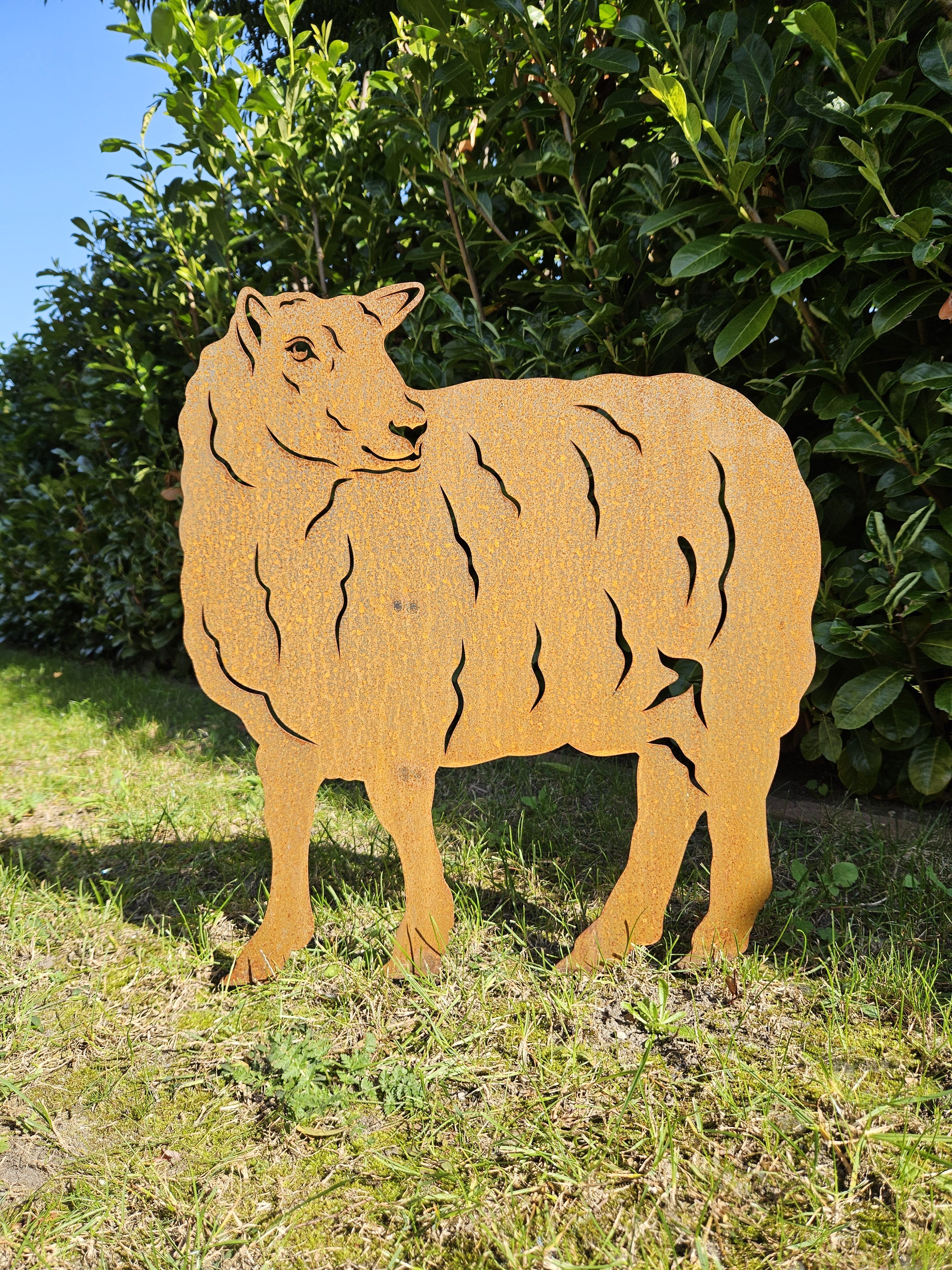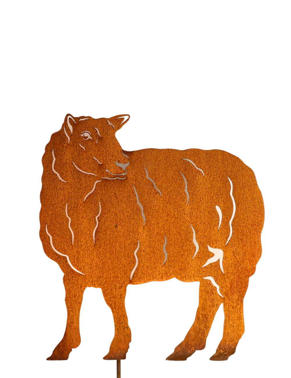 Diese schönen Gartenstecker mit dem Motiv Schaf und Lamm aus 2 mm Stahlblech werden Ihnen in blank geliefert. Innerhalb kurzer Zeit bildet sich im Außenbereich eine schöne Rostpatina. Auf der Rückseite der Gartenstecker ist ein Rundstab angeschweißt, mit dem können Sie Ihre Figuren Schaf oder Lamm ganz bequem in Ihrem Beet oder auf dem Rasen befestigen. Sofern Sie die Figur auf einem festen Untergrund wie Pflasterstein oder Fliesen stellen möchten, können wir anstelle des Stabes eine Bodenplatte anbringen. Bitte geben Sie uns diesen Wunsch im Bestellprozess unter “Anmerkungen” mit auf.
